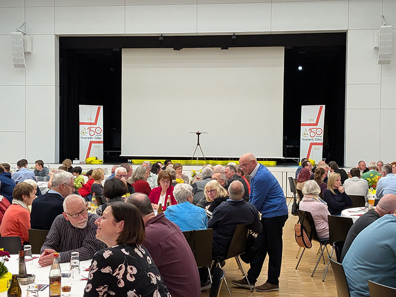 Glücklicherweise fiel der 27. März 2026 auf einen Freitag und die Verantwortlichen der Feuerwehr nutzten deshalb die Gunst der Stunde und veranstalteten am Abend dieses Tages ein großes Fest für alle Feuerwehrangehörigen nebst Familien, befreundete Blaulichtorganisatoren und den Gemeinderat mit Bürgermeister sowie weiteren städtischen Angestellten.